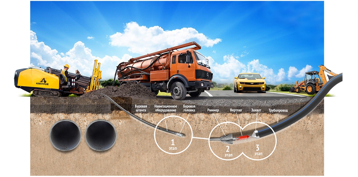 • производить бурение, расширять пилотную скважину, прокладывать трубопровод;