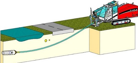 - Санация (внутри старых неисправных коммуникаций). На начальном этапе производится прочистка старых каналов и замена (выемка) поврежденных фрагментов. Затем с помощью специального оборудования в канал затягивается новая пластиковая труба меньшего диаметра.